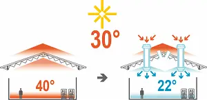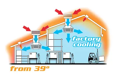 Le rafraîchisseur d’air adiabatique Eco Cool® maintient une température agréable même en période de forte chaleur, assurant un confort thermique constant dans les grands espaces professionnels et industriels.